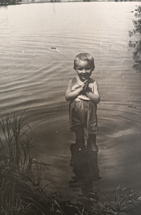 Крещен по рождении в старообрядческом православном храме г. Павлово-Посада священником Даниилом Березиным, крестная мать (в роду говорят "кресная") Лидия Ивановна Мягченкова (Плохова). Тетя Лида была двоюродной сестрой моего отца. А отец Даниил и его жена Татьяна (Плохова) тоже были родственниками. Крещение было тайным, отца и маму могли тогда за это выгнать с работы. До моего второго класса включительно мы жили в Андронове - деревне рядом с поселком Большие Дворы недалеко от города Павлово - Посад. Небольшой деревянный дом. Печка, которую топили дровами и торфом. Торфяные брикеты родители делали сами-болото было сразу за огородом. В доме - комната родителей, передняя, маленькая проходная кухня, наша с Леной комната и комната без двери за печкой, где жила с нами баба Поля-наша няня. Еду готовили в печке и на керосинке. Моя любимая еда того времени - картошка с подсолнечным маслом и козье молоко. Родители держали козу и кур. Одно время была у нас свинья, но мясного я не ел. Когда приглашенный сосед ее закалывал, меня выпроводили за ворота, а вот визг бедной хрюшки помню до сих пор. Может поэтому и не ел тогда мяса. Когда пошел в школу, очень полюбил на переменах пирожки с повидлом за 5 копеек. Вообще любил печеное, особенно мамины плюшки. И еще - мороженое. Как-то съел сразу два брикета крем-брюле. Но, толи мороженое было плохое, толи переел, но после того случая не мог есть крем-брюле много лет. Сейчас отпустило, опять крем-брюле мое любимое мороженое. А еще у нас был пес-дворняга. Звали его Тузик. Баба Поля почему-то звала его Тютёк. Детские ясли и сад находились в Больших Дворах. Первоначально водили туда сестру Лену, но из-за расстояния, детских болезней и занятости родителей решили взять для нас няню с проживанием. Меня в детский сад после Лены определять уже не пробовали. Мама работала учителем в школе, иногда в три смены, папа на работе с утра до ночи. Поэтому нашим воспитанием в будни занималась бабушка Поля. Баба Поля - Галушкина Пелагея Никитична, приехала в Павлово-Посад из Сталинградской области, сама из казачек. В пору детства и молодых лет Пелагеи эта часть страны называлась областью Войска Донского. Теперь - Волгоградская область. Вроде бы ближайший город к ее деревне был Урюпинск. Замужем Пелагея не была, детей у неё не было. Был брат, а когда перебралась в Павлово - Посад, то остановилась у своих племянниц. Нашел для нас бабу Полю наш дедушка Сергей. Родители отвели няне угол, питалась она с нами, получала от родителей зарплату. Позднее, еще в Павлово-Посаде, папа выхлопотал для бабы Поли пенсию. Денег родителям не хватало и иногда они брали у бабы Поли взаймы. Баба Поля любила огород. Любимый ее художественный фильм был, как она называла, “Цветок в пыле” ( читай “в пыли”). Индийский фильм про любовь. Вязала пуховые шали на заказ. Однажды папа приехал с работы очень поздно и баба Поля ему высказала: “Мы что тебе здесь говном что-ли намазаны? Что ты так поздно возвращаешься?” Выражение в семье прижилось. Когда что-то было подобное, то в шутку звучало “Мы, что тебе здесь… “, без продолжения фразы. Однажды баба Поля меня и мою двоюродную сестру Таню просмотрела. Мы маленькие играли возле канавы. На нас были пальтишки. Баба Поля с соседкой сидели на лавочке к нам спиной и беседовали. Вот здесь-то непонятным образом мы и оказались оба по пояс в канаве