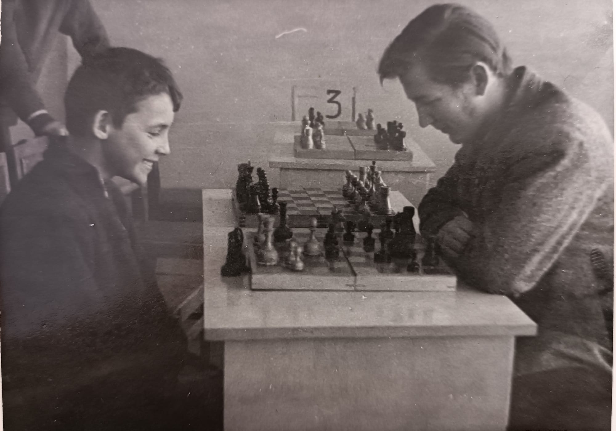 Папу научил играть в шахматы его отец - мой дед, которого я не застал. Меня - мой отец, а я в детстве - сына. Первые уроки шахмат получил от отца не позднее 2 класса школы. Вспоминаю, как в детстве папа собирался на работу, брился, а я пристал к нему поиграть. Он согласился, только играл со мной не глядя на доску из ванной комнаты. Выиграл у меня, конечно. Но прогресс в игре был. Когда мы переехали в поселок Пролетарский под Серпухов в пионерском лагере занял 1 место. Как победителю вручили мне в качестве приза книгу космонавта Николаева А.Г. В 5 классе на школьных соревнованиях обыграл 10-ти классника. Учитель физкультуры был удивлен моему результату на соревнованиях и решил поощрить. Хотя призового места я не занял. У него были специальные книжки для присвоения спортивных разрядов школьникам. Официально в спорте тогда было всего 3 разряда. Поскольку я не был призером, он вручил мне разрядную книжку, где написал несуществующий 4 разряд. Потом в шахматах у меня образовался большой перерыв. Лишь на зимних каникулах после 1 курса института немного поиграл. Тогда к нам в дом отдыха приезжал шахматист Полугаевский Л.А., в прошлом чемпион СССР. Был сеанс одновременной игры, в котором приняли участие многие отдыхающие студенты, в том числе и я. На всех досках, за исключением одной ничьей, прославленный шахматист выиграл. Играл немного еще будучи студентом, когда мы с друзьями ежегодно летом отдыхали в палатках под Москвой на Пяловском водохранилище. Дальше, как отрезало. Уже будучи в длительной загранкомандировке в Торгпредстве СССР в КНДР опять вернулся к этой игре. Занял 1 место по Торгпредству. Пригласили в команду Посольства поучаствовать в межпосольских соревнованиях. Здесь то я и "отличился" - занял последнее место. Предполагаю плохо подготовился психологически. Делал много грубых ошибок. Наш Посол Бартошевич Г.Г., когда поздравлял команды и жал участникам руки, не преминул пройтись и срифмовать мой результат с моей фамилией. А потом опять в шахматах у меня образовался многолетний перерыв, пока мы с друзьями летом не стали ездить отдыхать на озера. Вот где разыгрывались баталии! Особенно интересной была игра в шахматы двое на двое. Уровень у всех разный, замыслы тоже. Договариваться с напарником нельзя. Очень захватывающе! И снова перерыв на десять с лишним лет, пока я не вернулся к этой замечательной игре. Собрал себе хорошую как мне кажется библиотечку книг. Учусь, анализирую, разгадываю задачи, иногда играю с ботом. Игру с друзьями, хотя бы онлайн пока не наладил. Эх, был бы жив мой отец. Он часто предлагал мне поиграть, а я в большинстве случаев отказывался. Сожалею.