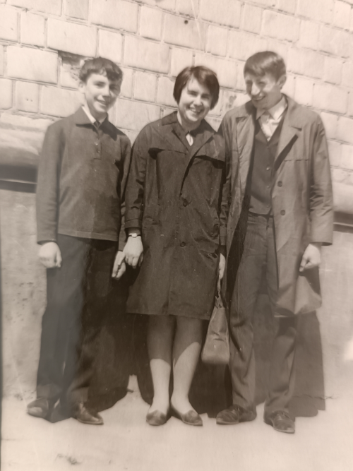 Познакомилась Лена со своим будущим мужем через соседа по площадке Бориса. Борис дружил с Леной и был моим другом, а с Лешей учился в свое время в одном классе. Борис с Леной пошли на танцы в городской парк Лосино - Петровска - подмосковного городка, где мы тогда жили. Вот на этих танцах и понравились Лена с Лешей друг другу. Борис потом, конечно, сильно расстроился. Зашел тогда к нему. Сидит, играет на баяне и поет грустные песни. А потом Лена решила нам Лешу предварительно показать. Окна нашей кухни выходили на площадь перед Домом культуры. Когда Леша в очередной раз пригласил Лену на свидание, она попросила встретиться у столба на этой площади, который хорошо был виден из нашей квартиры. В назначенный час Лена пошла на свидание, а мы всей семьей прильнули к окну разглядывать Лешу. Ну, что сказать? Широкоплечий красавец. Учился он тогда во Фрязине в филиале МЭИ на факультете радиоэлектроники. Лена была студенткой текстильного института. Леша, еще учась в школе, закончил музыкальную школу по классу баяна. Я в это время обучался в музыкалке тоже на этом инструменте. Когда Леша стал приходить к нам в дом, играл "Полет шмеля". Для меня это исполнение было недосягаемой высотой. Еще они с Леной как-то решили вдвоем пожарить блины. Спорили как правильно мазать маслом сковороду, но испекли и меня угощали. Но дальнейшей тяги к кулинарии у будущего зятя не наблюдал. Зарегистрировали брак молодожены 26 декабря 1970 года. Пишу этот рассказ как раз в день их 55 летнего Юбиля. Ездили в ЗАГС в Москву на двух машинах. На передней жених, на второй невеста. У Лены долго потом маячил вопрос. Почему это Леша должен впереди ехать? Свадьбу справляли 31 декабря в нашей квартире. До этого дня Леша ходил ночевать к себе домой. Стол накрыли в большой комнате. В спальне родителей устроили танцы. Баянистом был сосед Борис. За столом сидели тесновато, народу было много. На лестничной клетке пели песни под гитару. Леша был тогда на 4 курсе, а Лена на 5-м. Конечно, было весело. Я тогда учился в 10 классе и отчасти завидовал молодым и их друзьям. Ведь они уже были матерыми студентами, а мне еще предстояло поступать в институт.